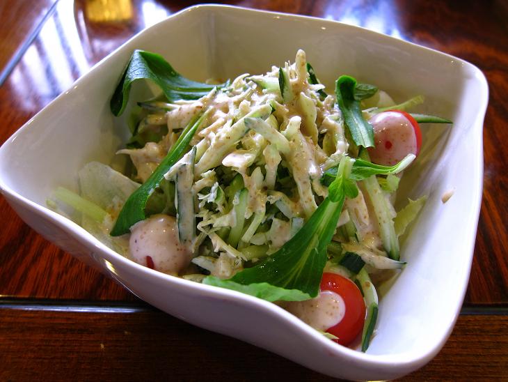 肝吸い、小鉢、サラダ、お新香がセットになっていました。