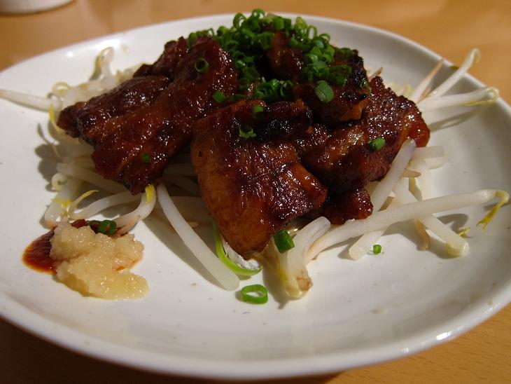 甘辛のタレで香ばしく炙られた角煮です。もやしと一緒に食べると良いですね。