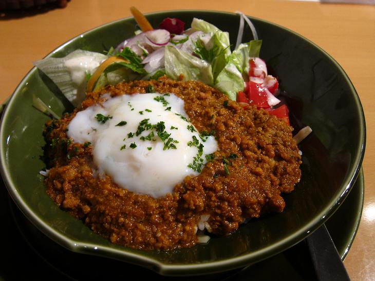 温泉玉子を混ぜるとまろやかな味に変化して、美味しいタコライスでした。夏はコレだ!って感じでしょうか。