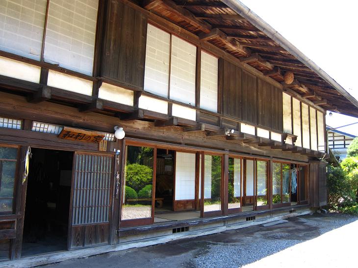 建物は農家です。入口を入ると土間(玄関)の梁にツバメの巣があり交代で卵を温めている様子でした。