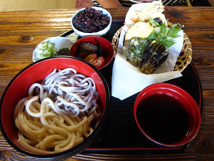 二色麺、天ぷら、黒三おこわのセットです。