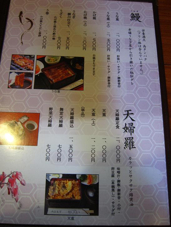 鰻料理、天婦羅、魚料理、鳥料理と大きく4つです。