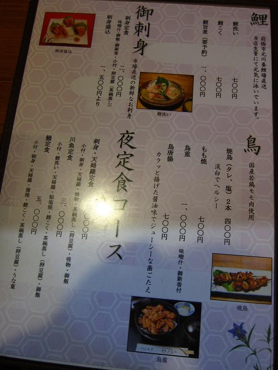 本日のお目当ては『鰻重、コイのあらい、なまず薄造り、なまず天ぷら』です。