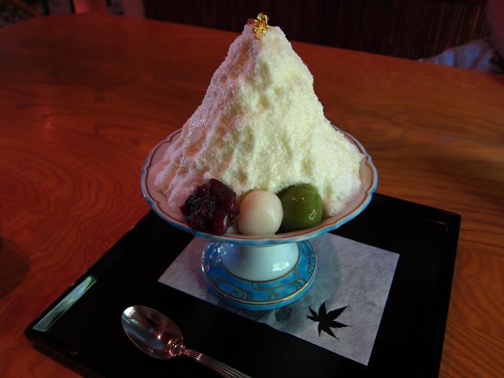 粉雪のようにきめ細かい氷にかけられたミルクが絶品!氷の中の抹茶アイスは甘さ控えめでミルクの甘さと対称的。とても上品で美味しいカキ氷ですよ!
