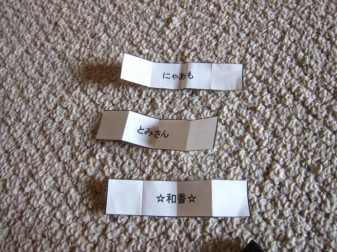 名前を書いた紙を投げて遠くに飛んだ3名を当選者とします。
